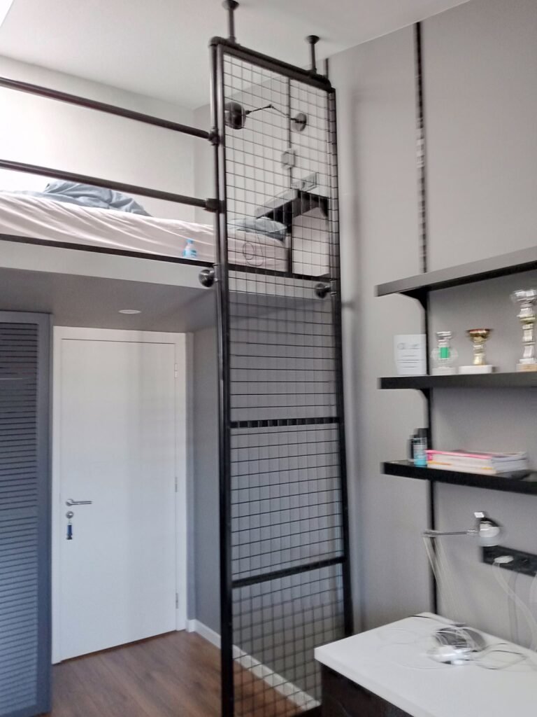 Açık plan yaşam alanlarının yaygınlaşmasıyla birlikte metal bölme sistemleri öne çıkıyor. Siyah metal profiller ve cam kombinasyonu, mekânı bölmeden ayırma imkânı sunar. Bu sayede hem modern bir görünüm elde edilir hem de alan daha geniş ve ferah hissedilir.